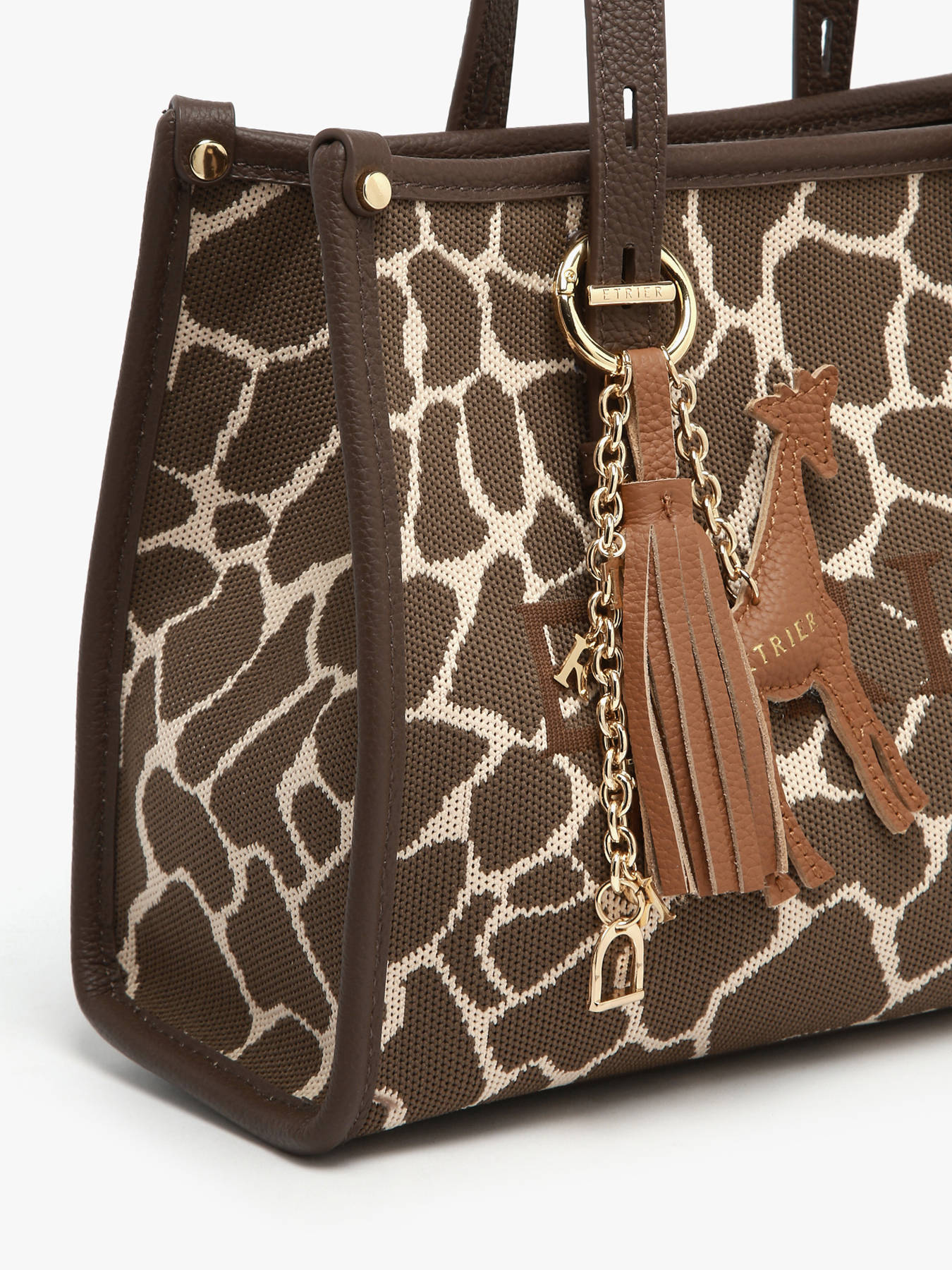 The SAFARI bag charm by ETRIER adds a playful and elegant touch to the line's universe. Available in several colors, it represents an iconic safari animal, allowing you to personalize your bag with character. The black version highlights the zebra, mocha features the elephant, while camel showcases the silhouette of a giraffe. Designed as a true style accessory, this bag charm perfectly complements the various bags in the SAFARI collection, adding a wild yet refined note to your summer looks.