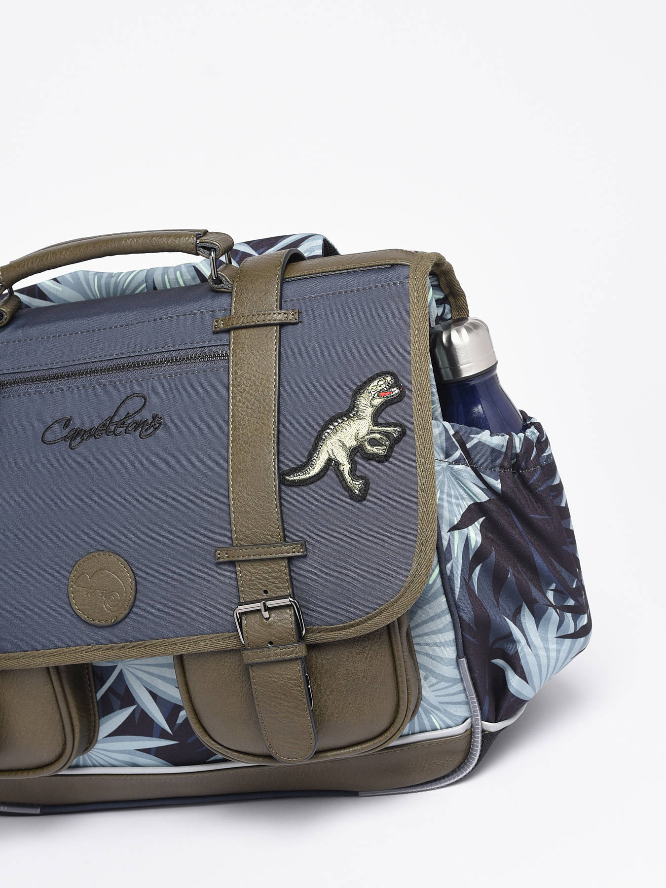 41 cm - 24 litres - 1.33 kg ~ Cartable primaire 41 cm signé Caméléon de la ligne Vintage Urban. Ce cartable enfant convient parfaitement pour le CM1 et le CM2. On adore les belles touches vintage avec ses finitions et sa poche à fermeture zippée sur le rabat ! Il se divise en trois grands compartiments pour l'ensemble des affaires d'école. Fonctionnel, il dispose d'une petite poche zippée, d'un emplacement spécial règle ainsi que de deux poches à fermeture éclair sur le devant du cartable. Petit plus, ce cartable dispose d'une étiquette nom. Ergonomique, la poignée et le fond du cartable sont renforcés. Très confortable, le dos et les bretelles sont rembourrés. Ce cartable est imperméabilisé. Côté sécurité, des bandes réfléchissantes sont disposées autour du cartable enfant. Petit plus, une règle est offerte !