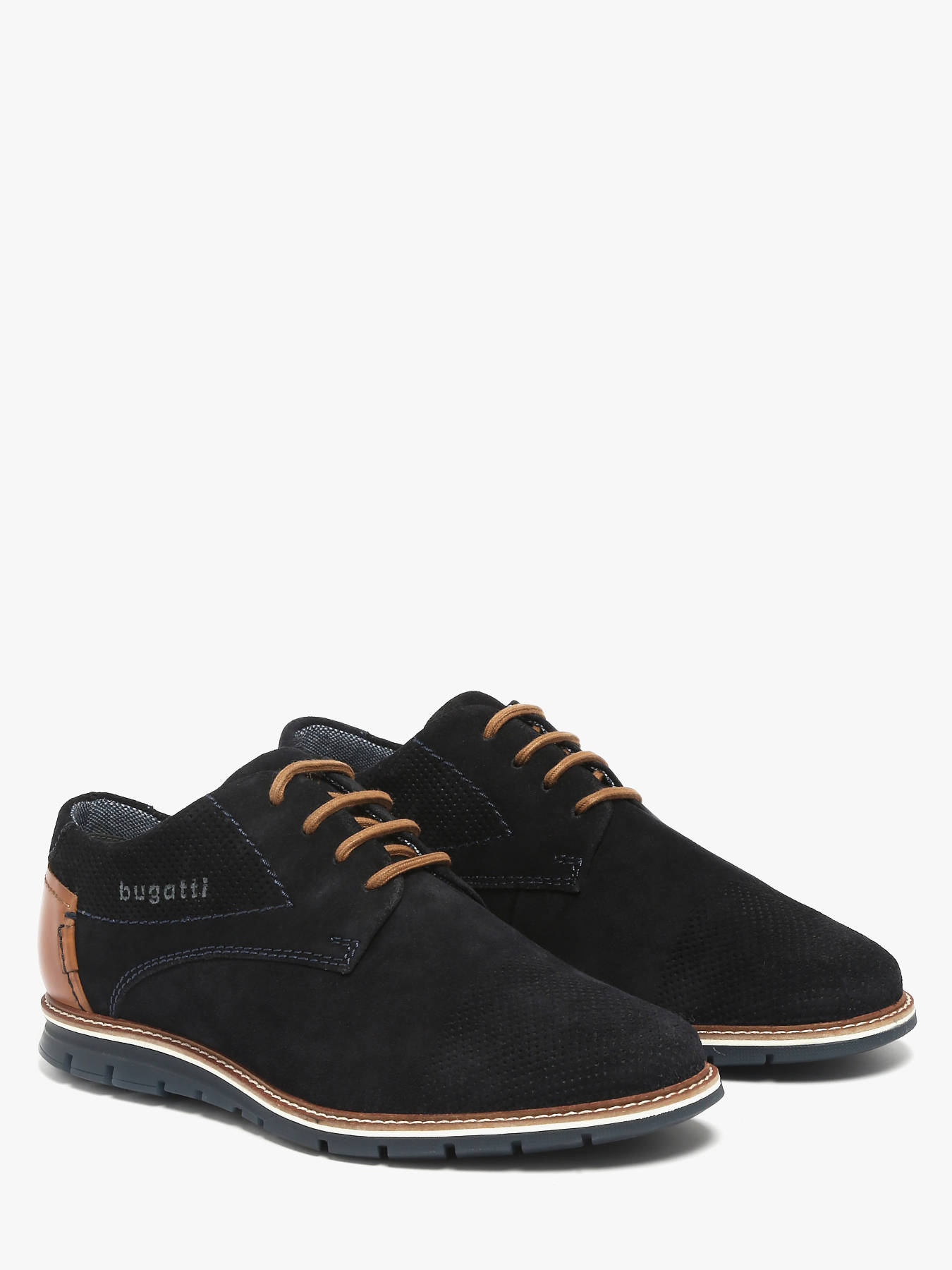 Les chaussures de ville à lacets BUGATTI en cuir bleu foncé de la gamme Simone Comfort allient élégance et confort. Leur design raffiné se distingue par des perforations respirantes, un détail arrière marron cognac et des coutures ornementales, apportant style et sophistication. Intemporelles, ces chaussures en daim pour homme présentent un aspect légèrement vieilli qui renforce leur charme et leur caractère. Les semelles intérieures amovibles permettent d’ajuster le confort selon vos besoins, tandis que leur silhouette élégante s’accorde parfaitement avec un costume ou un ensemble plus décontracté. Ce modèle combine modernité, tradition et praticité, offrant aux hommes une chaussure chic, confortable et durable pour toutes les occasions, du travail aux sorties habillées.