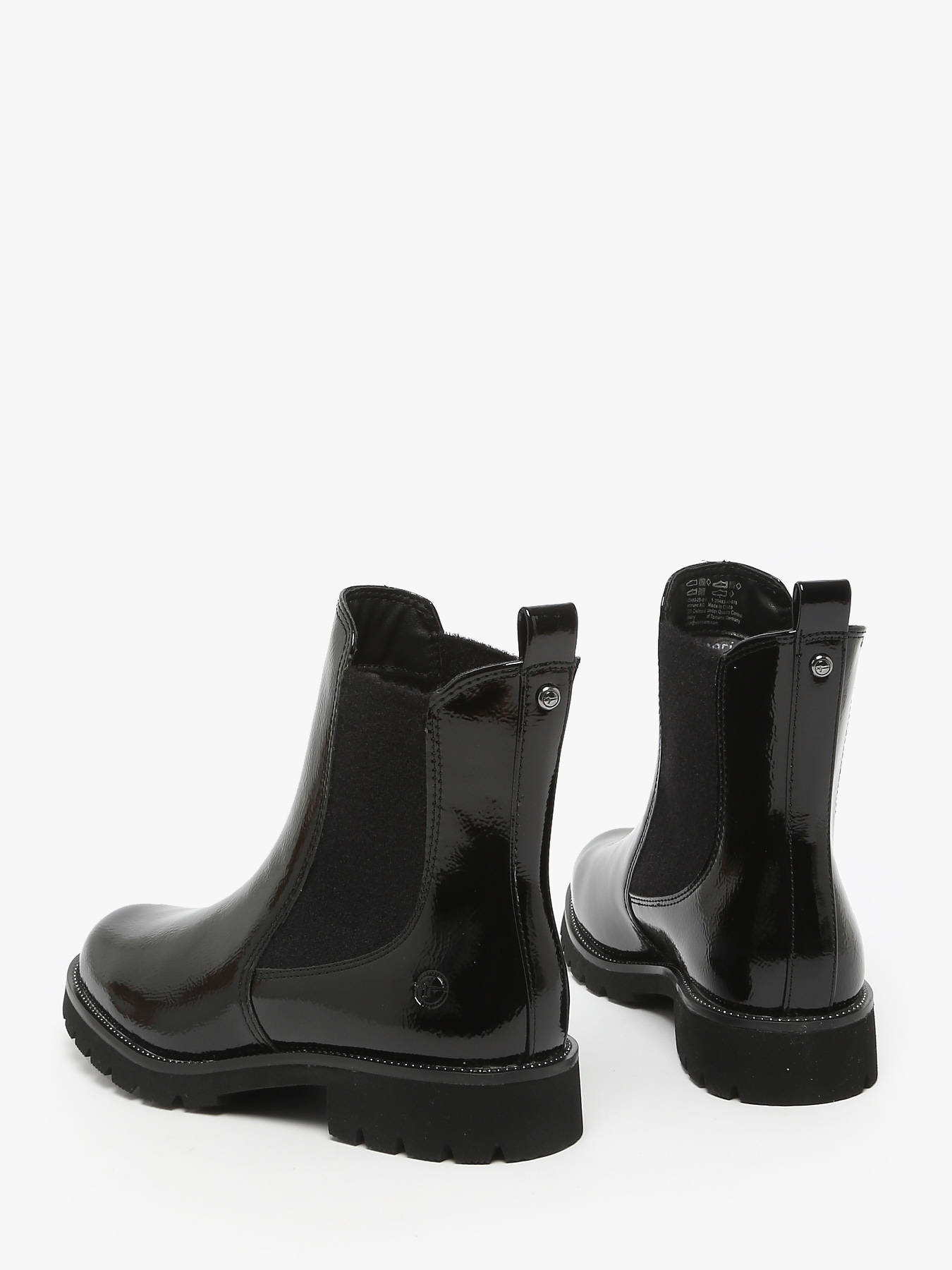 Discover the freedom of your steps with these Tamaris synthetic Chelsea boots, available in patent black, perfect for autumn and winter, combining urban style with modern elegance. Their 3 cm block heel and thick sole provide comfort and confidence with every step, while the elastic panels and pull tab make them easy to slip on. Ideal for your active days, from the office to city strolls, these Tamaris boots accompany you with ease and character, reflecting your unique personality. Step confidently, express your modern urban style, and let these Chelsea boots elevate your look while offering comfort, support, and elegance in every situation.