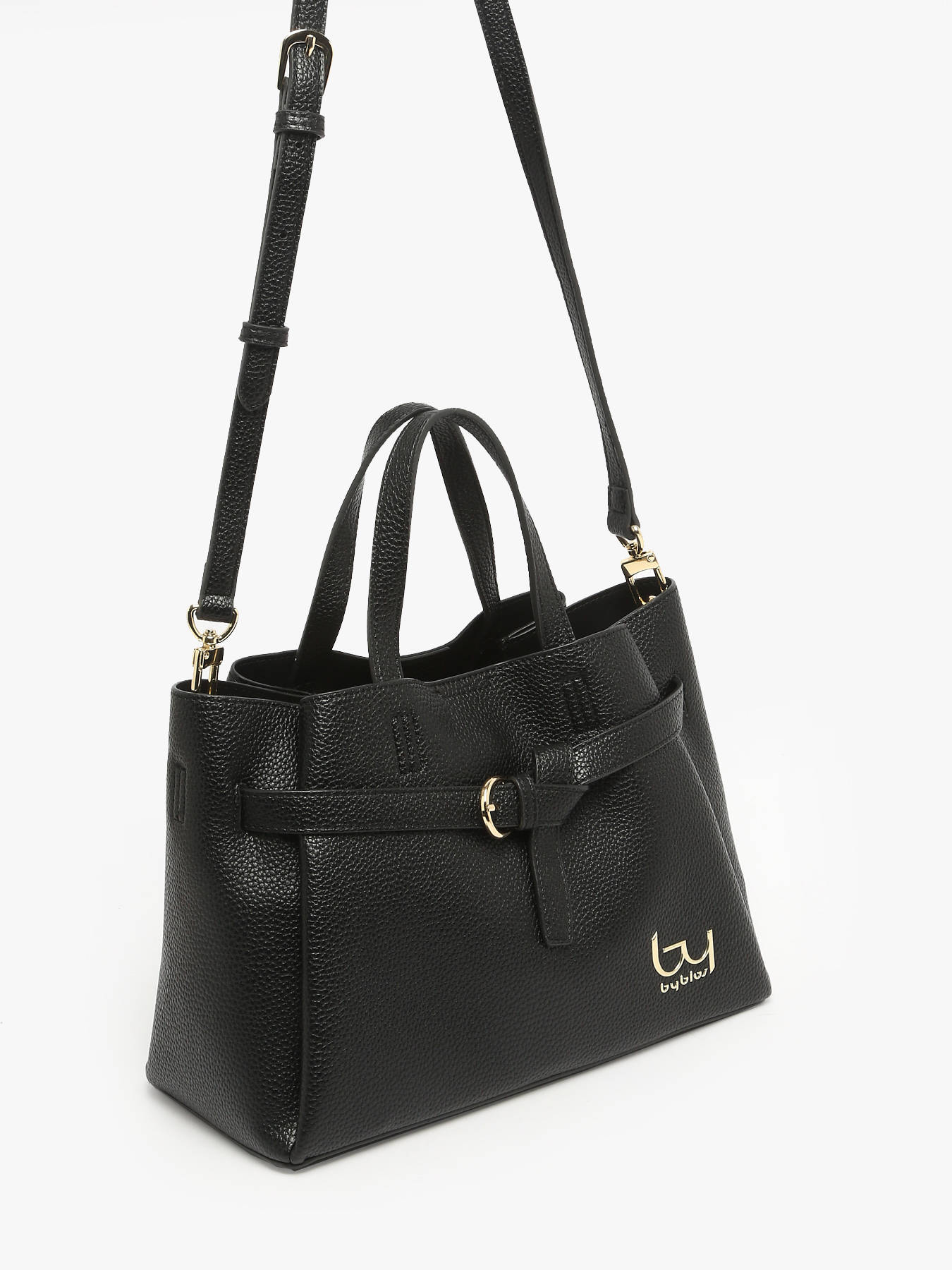 The AYA handbag by By Byblos is an elegant and versatile accessory that combines style, practicality, and comfort for everyday use. Made from durable coated canvas, it provides lightness, long-lasting quality, and an easy-to-maintain finish while maintaining a modern, refined design. Its practical organization includes a front pocket, a back pocket, and a zip closure that secures your belongings while adding a sophisticated touch to any outfit. The 11.5 cm handle height allows comfortable hand carrying, while the adjustable, removable shoulder strap offers the option to wear it crossbody according to your needs and preferences. Inside, a main compartment and a slip pocket help organize essentials such as your wallet, phone, and accessories, keeping them easily accessible. Compact yet functional, the AYA bag blends practicality with elegance, making it an ideal companion for city days, professional meetings, or outings with friends. Its refined design makes it a daily essential.