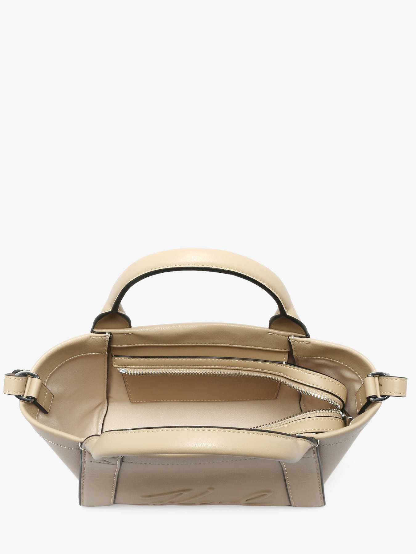 The K VILLE KARL LAGERFELD handheld bag, made from P.U., combines modernity and functionality. This compact model features a secure zip closure, ensuring the safety of your personal belongings. Its 8 cm handle allows for an elegant hand carry, while the adjustable shoulder strap offers the option to wear it crossbody for added comfort and daily practicality. Inside, a dedicated card slot helps organize your essentials. This versatile bag suits all occasions, from office to city outings, while showcasing KARL LAGERFELD’s contemporary and refined aesthetic. Perfect for those seeking a chic yet functional accessory, it stylishly complements any outfit.