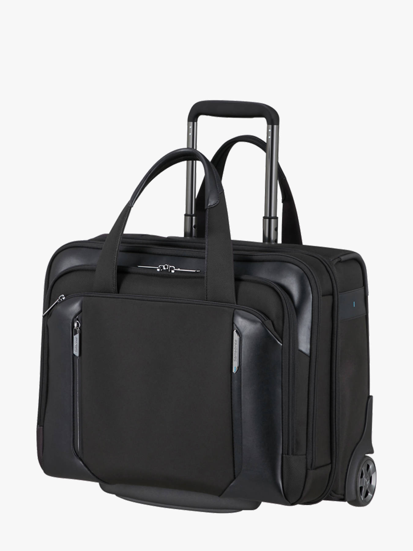 Combine security, comfort, and elegance with the SAMSONITE SPECTROLITE 4.0 15"" wheeled pilot case. Made from lightweight, durable polyester, this professional bag weighs 3.1 kg and offers an expandable capacity from 30 to 35.5 L, with compact dimensions (36 x 46 x 20 cm, expandable to 25 cm)), ideal for daily business travel. Its two smooth wheels and multi-position telescopic handle ensure easy mobility, while dual carry handles and a rear luggage strap provide versatile transport options. Inside, the padded compartment protects laptops up to 15.6"", a pocket fits tablets up to 10.5"", and RFID protection keeps your data secure. Three front pockets allow quick access to essentials. Backed by a 5-year warranty, this pilot case combines durability, organization, and refined style, making every professional trip practical, secure, and effortlessly stylish.