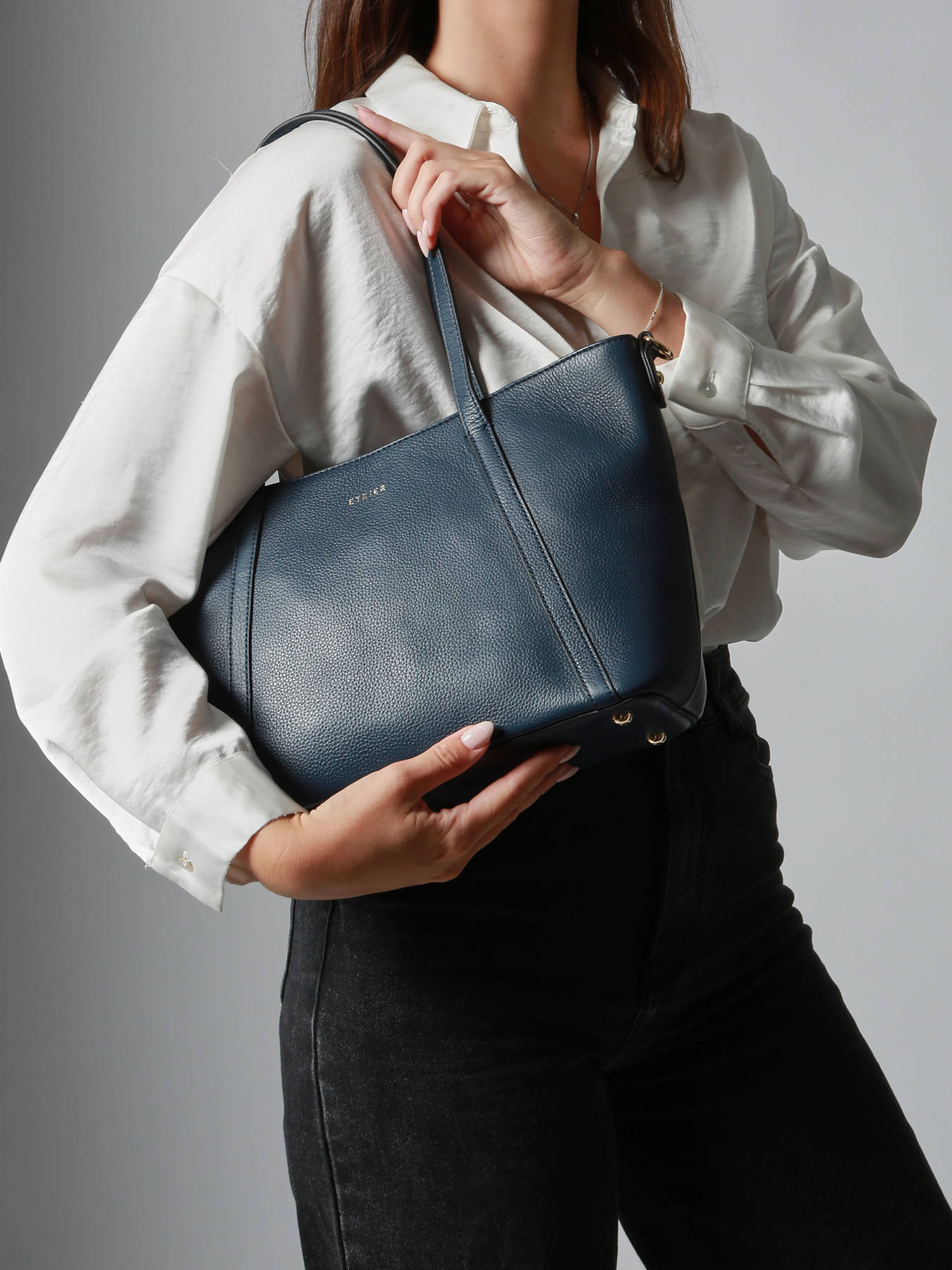 Le grand sac cabas ETRIER de la ligne TRADITION incarne l'élégance au quotidien. Conçu en cuir grainé pleine fleur, il présente une poche pratique à l'arrière et se ferme par un zip robuste. Sa anse en cuir permet un porté à l'épaule, tandis que l'intérieur spacieux offre un compartiment avec une poche zippée et deux poches plaquées pour une organisation optimale. Un accessoire raffiné pour toutes les occasions.