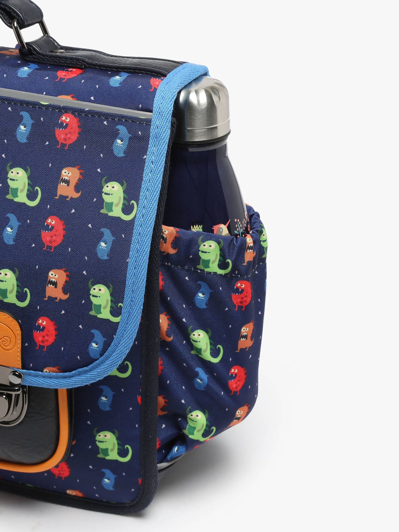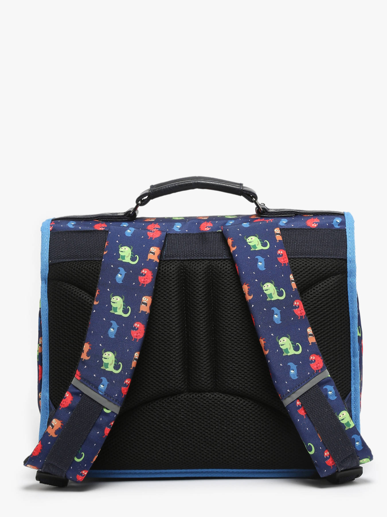 35 cm - 13 liters - 1.1 kg ~ 35cm children's satchel from the Retro line by Caméléon, ideal for kindergarten or first grade. This children's satchel is divided into 2 compartments that can hold the 21x29.7 cm and 24x32 cm notebooks formats. Inside the children's satchel, there is a small zipped pocket, a special ruler location and an elastic for the water bottle. The front pocket is perfect for snacks. Designed for children's comfort, the back and shoulder straps of this 35cm schoolbag are reinforced. Made from waterproof recycled polyester. Finally, on the security side, reflective bands are provided around the bag. A ruler is offered in this binder!