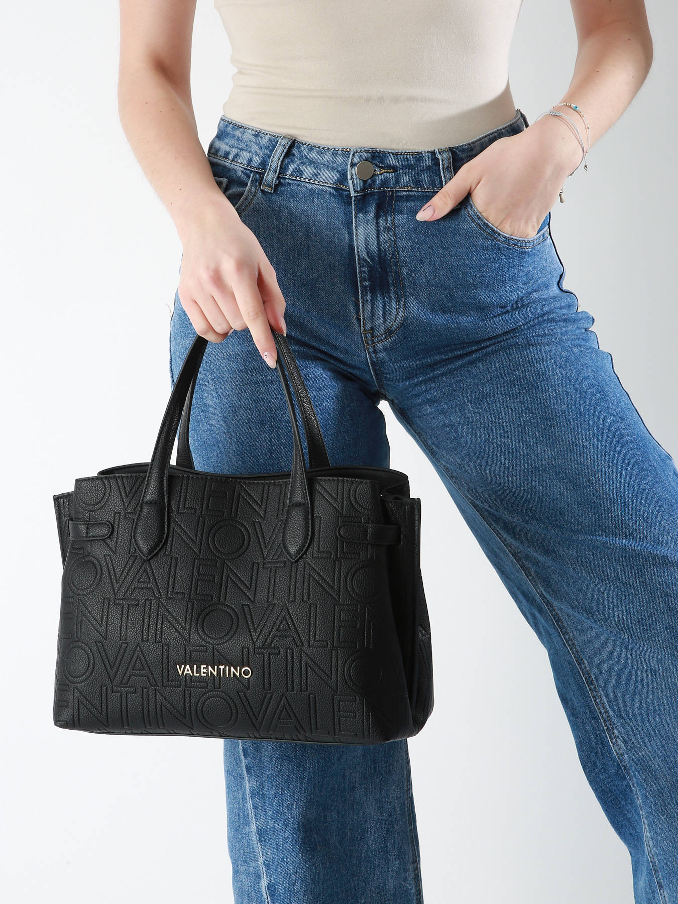 Choose elegance with this VALENTINO handbag, crafted from coated canvas for the perfect blend of style and durability. Its structured design and zip closure ensure optimal security for your essentials. Featuring a front and back pocket, it offers convenient and accessible storage. The spacious interior includes a main compartment, a simple pocket, and a zip pocket for perfect organization. Versatile, it can be carried by hand or worn crossbody thanks to its adjustable and removable strap. A sophisticated model that combines functionality and refinement, perfect for complementing any outfit.