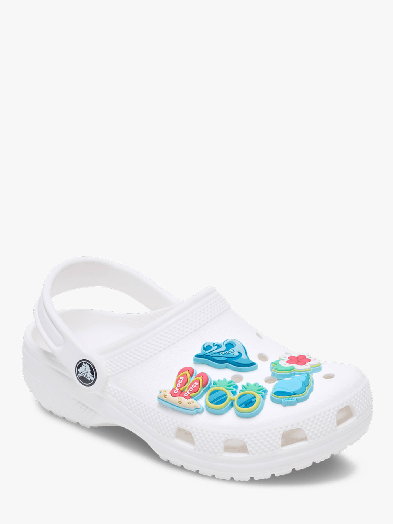 Add a playful and personalized touch to your footwear with the Beach Time 5 Pack by CROCS. Made from durable synthetic material, these decorations are specifically designed to fit easily into clogs and sandals, allowing you to create a unique style in seconds. Inspired by a summer theme, this set of five “beach time” charms evokes holidays, the sea, and sunshine, bringing a fun and trendy vibe to your look. Easy to insert and remove, they offer complete freedom to customize your shoes according to your mood or outfit. With their high-quality finish and long-lasting design, they are perfect for everyday use. Suitable for both kids and adults, this CROCS pack is the perfect accessory to turn your shoes into original, eye-catching statement pieces.