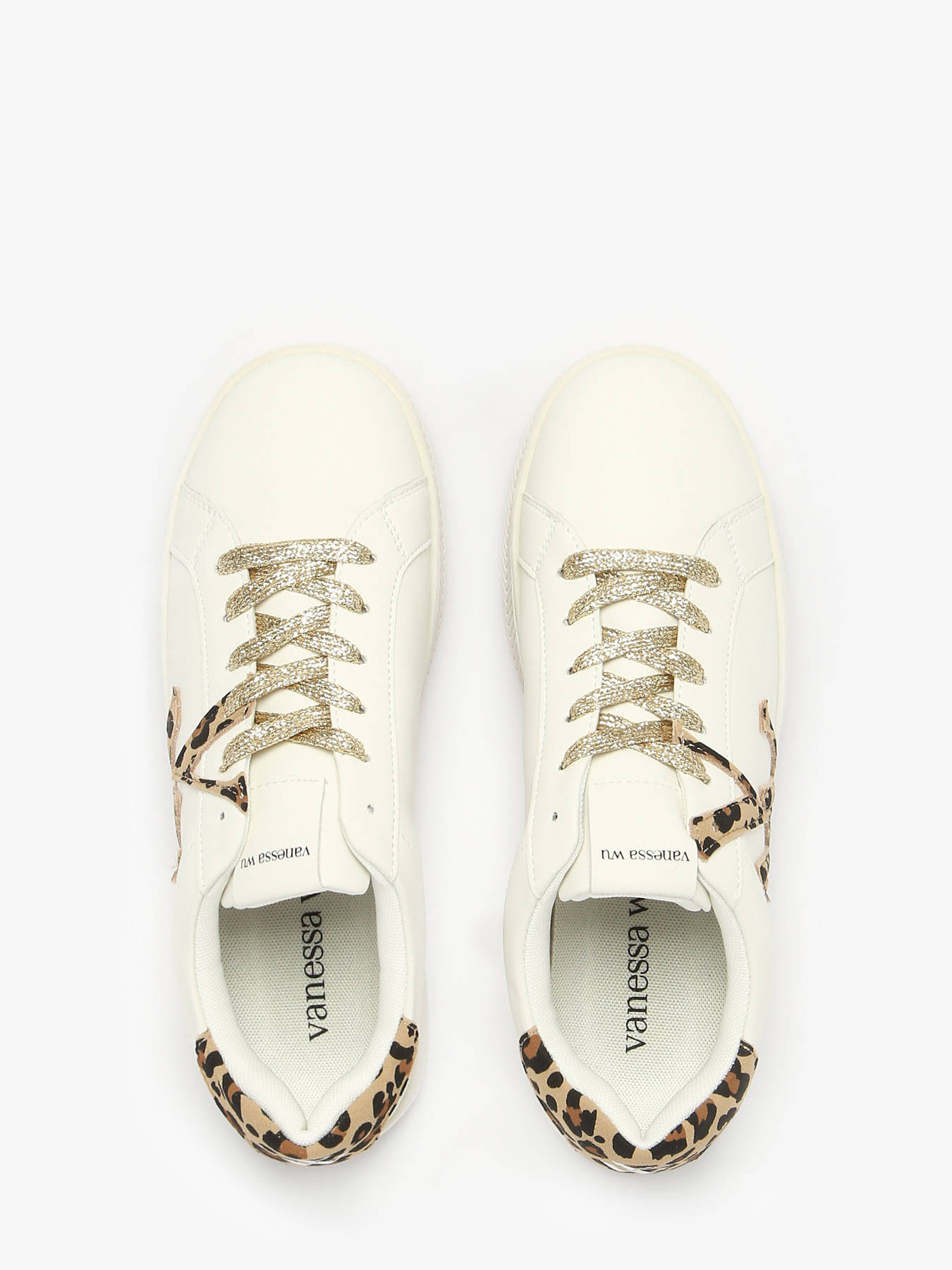 The JANE INITIALS sneakers from Vanessa Wu combine boldness with feminine style for a modern and confident look. Crafted with a smooth-finish synthetic upper, they stand out with a side logo and a leopard-print heel that add originality and character to every step. The textile lining ensures optimal comfort and breathability, while the removable textile insole allows for a personalized fit and easy maintenance. Featuring lace-up closures, they provide secure foot support. Versatile and on-trend, these sneakers perfectly complement both casual and more sophisticated outfits, combining comfort, modernity, and distinctive style, and perfectly reflecting Vanessa Wu’s bold and feminine spirit.
